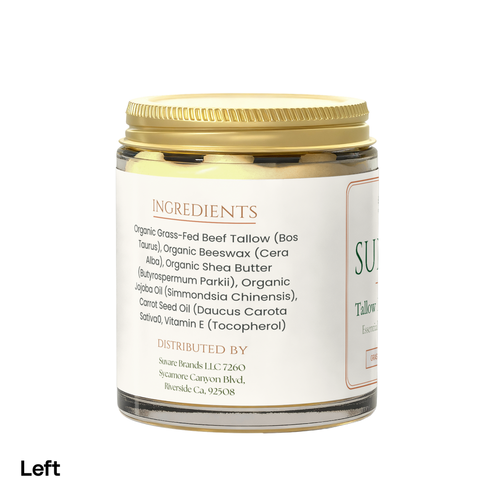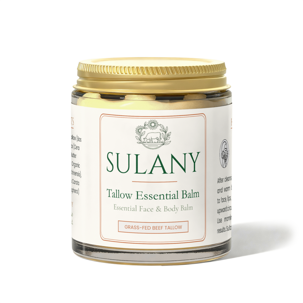 Our premium tallow balm is crafted with 100% grass-fed beef tallow and organic essential oils to deeply nourish and restore your skin's natural barrier.